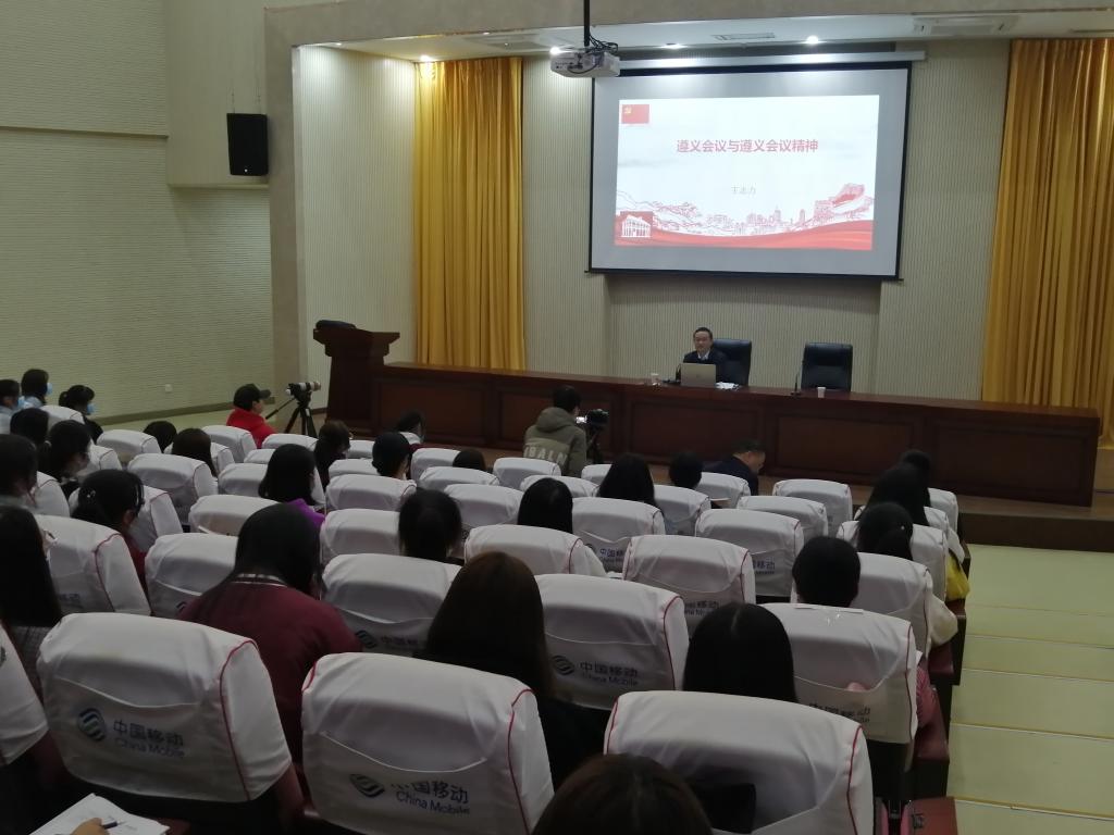 为深入学习贯彻习近平总书记在党史学习动员大会上的讲话精神和学校党委关于在全校师生中开展党史学习教育的安排部署,做到学史爱党、感恩奋进。4月6日下午4点30分,学校马克思主义学院“形势与政策”大课堂邀请遵义会议纪念馆副馆长王志力作题为“遵义会议与遵义会议精神”的专题讲座。马克思主义学院全体专兼职教师、学生代表共计200余人聆听了讲座,讲座由马克思主义学院党总支书记巫世瑜主持。