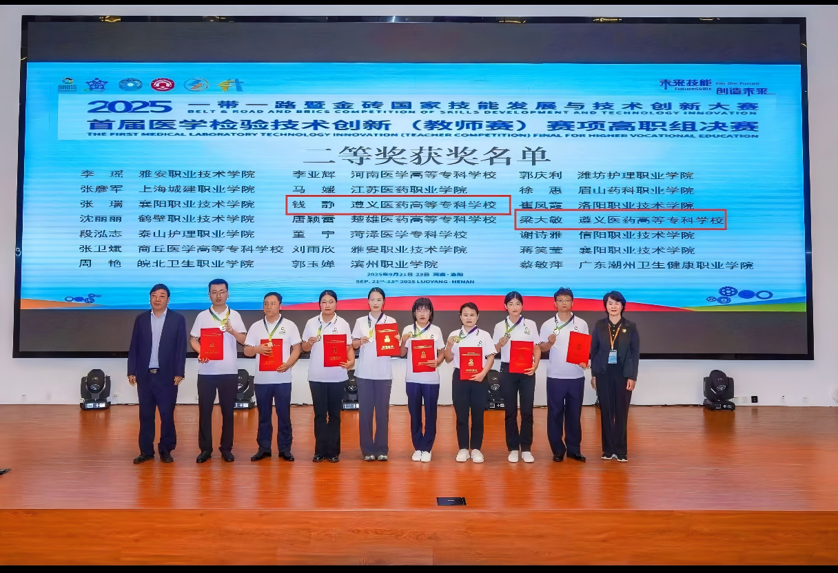 在刚刚落幕的2025年“一带一路”暨金砖国家技能发展与技术创新大赛首届医学检验技术创新(教师赛)中,我校医学技术系两位教师梁大敏、钱静凭借扎实的专业功底、精湛的技术技能和出色的临场发挥,斩获佳绩!梁大敏老师在分子生物学检验赛道荣获二等奖,钱静老师在生物化学检验赛道荣获二等奖。同时,我校参赛团队凭借出色的组织协调能力和良好的精神风貌,荣获团体优秀组织奖。