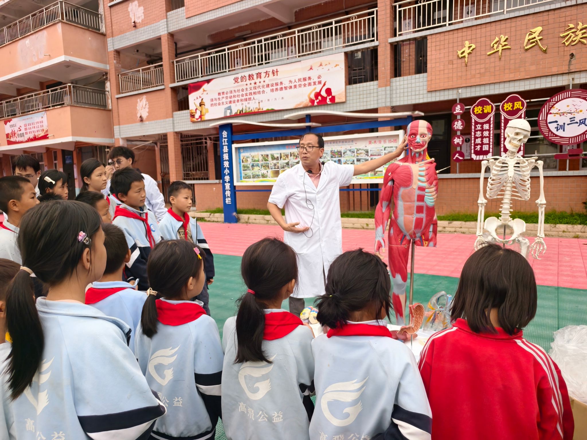 抵达皆蒿村后,学校师生受到村民们的热烈欢迎。捐赠活动在村委会广场正式拉开帷幕,老屯乡人民政府工作人员、皆蒿村“两委”干部与村民代表早早来到现场,与遵义医专师生共同搭建捐赠点位。活动中,学校龙思泉志愿服务队的队员们有序为村民发放物资。除物资捐赠外,遵义医专的医学专业师生还发挥专业优势,为村民和小学生们开展健康知识科普和心理咨询服务。