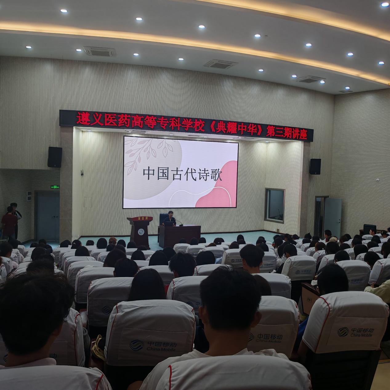 为深入推进“典耀中华”主题读书行动,帮助学子夯实古典文学基础、提升升学应试能力,10月14日下午4:30,我校图书馆在报告厅开展了“典耀中华·助力升学”古代诗歌主题讲座。图书馆副研究馆员李祯老师担任主讲人,现场座无虚席,350余名学生齐聚一堂,共赴一场诗韵与升学指导交织的文化盛宴。