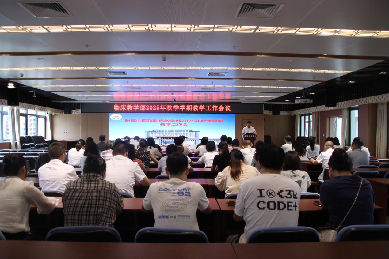 为进一步加强临床学科专业建设与临床教学管理,强化全程临床教学质量控制,不断提升临床教学能力和水平,9月12日,附属中医院在科教科五楼会议室召开了临床教学部2025年秋季学期教学工作会议。会议由临床教学部副主任、附属中医院副院长孔维军主持,学校党委委员、副校长邵珠建出席会议,临床教学部副主任董小君、叶菊、卢远兴、徐广敏、代晖、唐布敏,以及教务处处长刘亮等75人参加了会议。