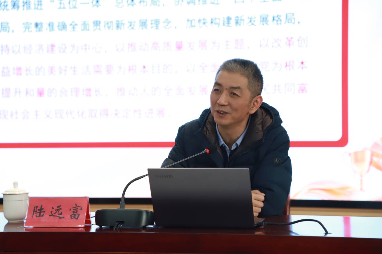 11月25日下午,学校举行学习贯彻党的二十届四中全会精神宣讲会。市委宣讲团成员,学校党委副书记、校长陆远富以《深学笃行党的二十届四中全会精神 接续推进中国式现代化》为题作宣讲。宣讲会由党委副书记张武晓主持。