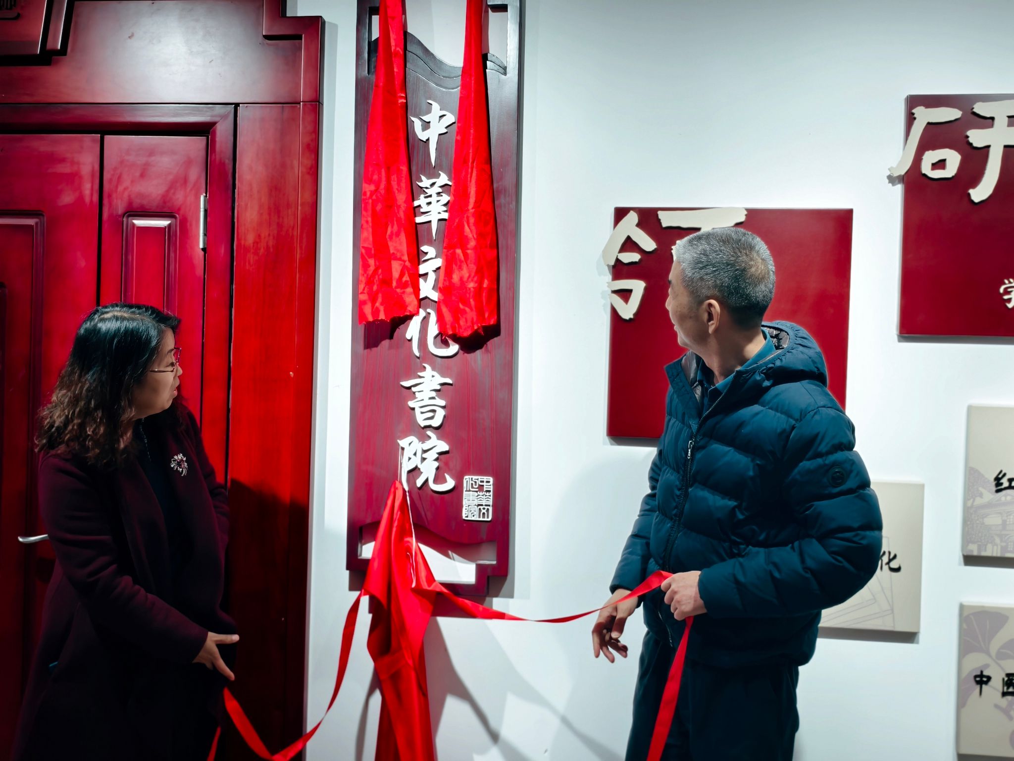 12月17日,学校中华文化书院揭牌仪式在综合楼一楼隆重举行。学校党委书记蒋红梅、校长陆远富共同为书院揭牌,标志着学校在构建“马院+书院”协同育人新格局方面迈出坚实一步。