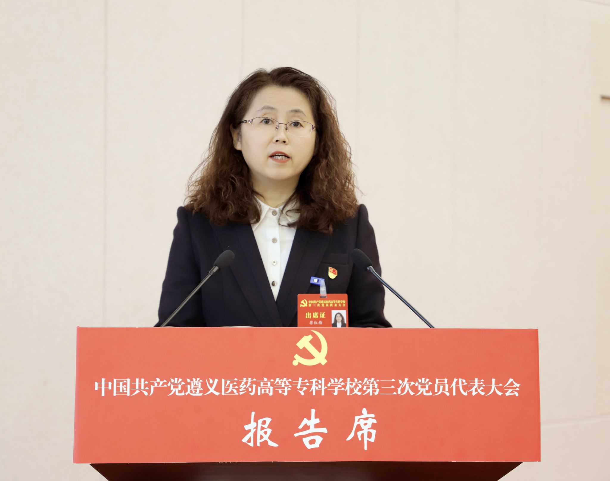 蒋红梅代表中共遵义医药高等专科学校第二届委员会向大会作的报告,全面回顾了过去五年学校党委团结带领全体师生在党的建设、内涵发展、立德树人、社会服务、形象提升、治理完善、从严治党等方面取得的显著成就。五年来,学校党委全面履行管党治党、办学治校主体责任,埋头苦干、奋力攻坚,圆满完成了学校第二次党代会明确的任务,实现了党的领导坚强有力,引领作用更加彰显;办学底蕴基础厚实,发展势头更加稳健;时代新人培育增效,育人特色更加鲜明;挺膺担当积极有为,贡献价值更加突出;精神家园构筑坚实,奋进姿态更加向上;治理根基持续巩固,治理水平更加高效;政治生态持续向好,育人环境更加清朗。