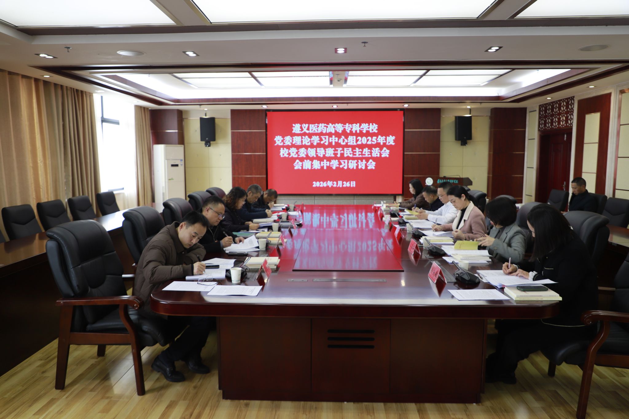2月26日,学校党委理论学习中心组在综合楼举行2025年度校党委领导班子民主生活会会前学习研讨。学校党委班子成员参加会议,会议由校党委书记蒋红梅主持。