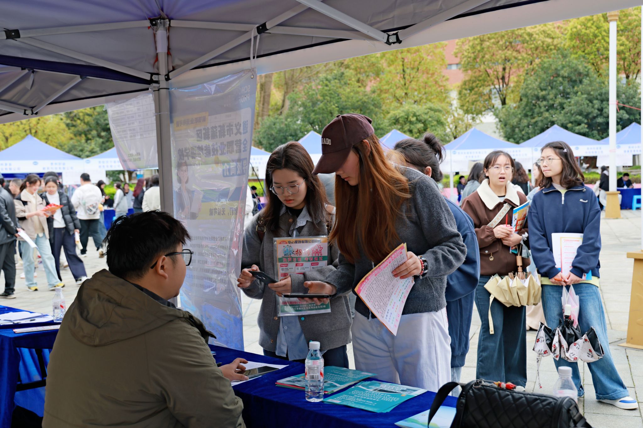 现场展位林立、人潮涌动,求职热度从清晨持续至下午。用人单位精心布置展位,招聘海报与企业宣传册整齐陈列;众多毕业生提前到场,手持简历,认真浏览《用人单位展位一览表》,仔细标记心仪单位的位置,为求职做足准备。