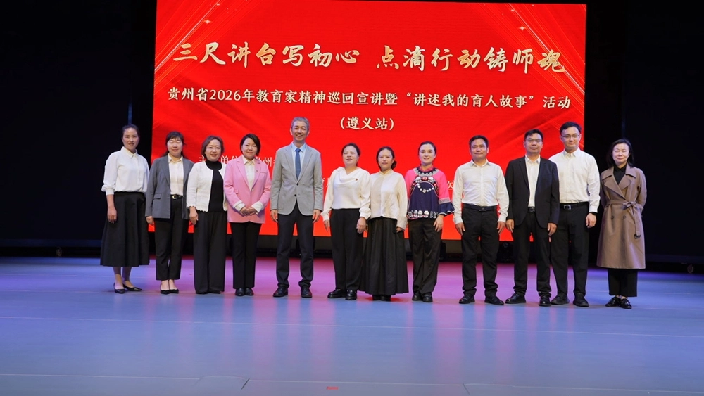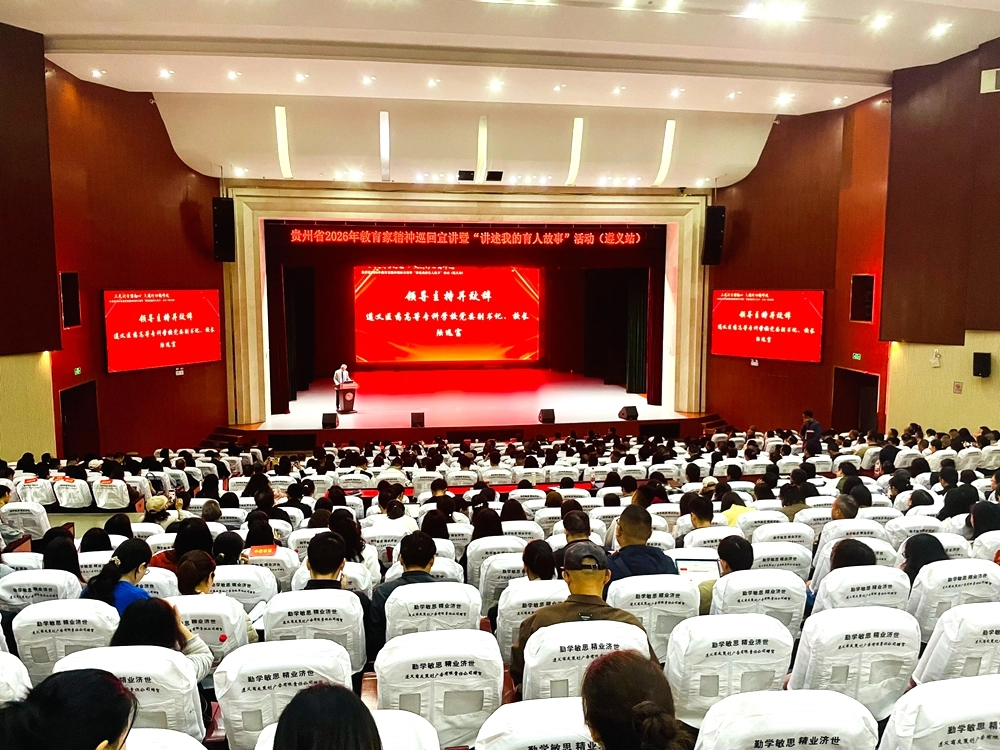 4月15日上午,2026年贵州省教育家精神巡回宣讲暨“讲述我的育人故事”(遵义站)活动在遵义医药高等专科学校大礼堂举行。10位来自贵州不同地域、不同学段的教育工作者,用他们最质朴的语言和最真实的经历,将“教育家精神”这一宏大命题,具象为一个个扎根泥土、烛照生命的动人篇章。500余名聆听者,在掌声与泪光中,共同完成了一次对教育初心的集体回望与精神淬炼。