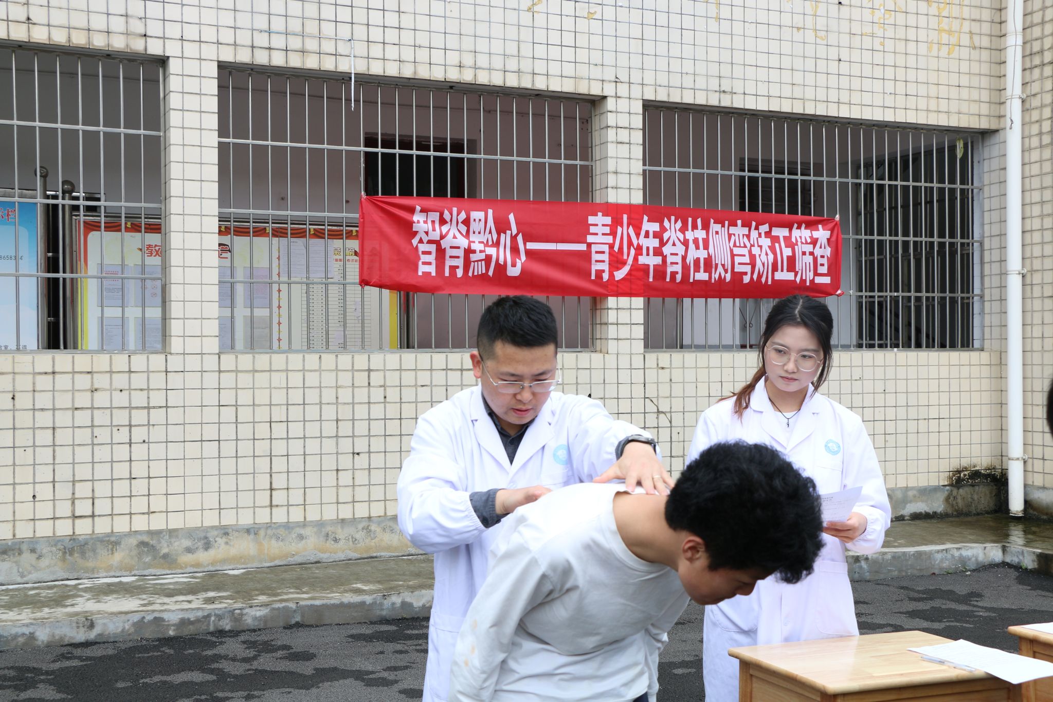 为响应“健康中国”战略,守护青少年身心健康,2026年3月18日下午,中医学系党支部带领师生走进中桥学校,为该校七至九年级160名学生开展青少年脊柱侧弯公益筛查活动,以“早发现、早诊断、早干预、早康复”为目标,为青少年脊柱健康筑牢防护屏障。