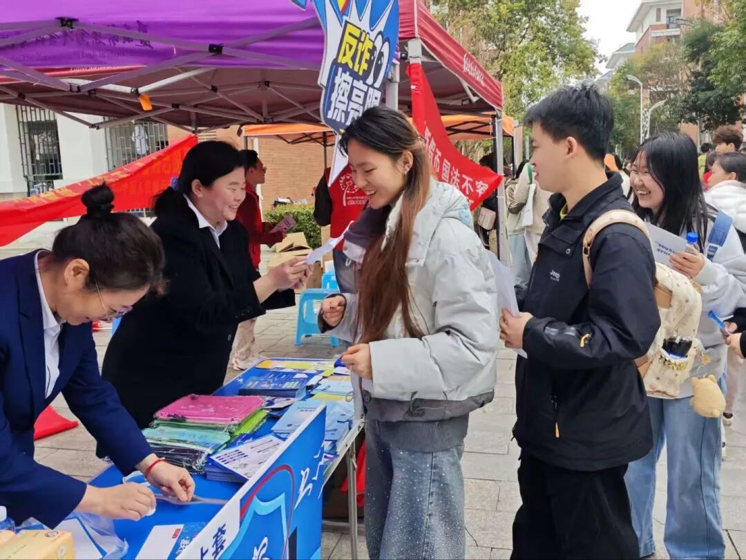活动现场,银行工作人员也没闲着,一边讲金融反诈知识,一边解答各种疑问。志愿者穿梭在人群中,把反诈宣传册递到每个人手里:刷单诈骗、冒充客服、虚假贷款……各种套路一网打尽,防范技巧手把手教。